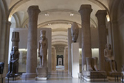 Egyptian Antiquities, Room 12: The Temple, Musée du Louvre, Paris © 2008 Musée du Louvre / Angèle Dequier "I'm thrilled just thinking about what I have to show you...this interesting series of monuments that reveals the cult, the beliefs, and the public and private life of an entire people before your eyes," wrote Champollion in 1827, summing up his encyclopedic vision of the museum. Art was only one of the aspects of the collection; inscriptions on stone and papyrus, everyday artifacts, and religious objects were all viewed from a historical and ethnological perspective. Certain decisions had to be made in 1997 during the Grand Louvre renovation project. The collection was distributed on two different floors. It was impossible to arrange the works by period, as the heaviest objects had to remain on the ground floor. This floor features a thematic installation centered on the major aspects of Egyptian civilization. It occupies rooms 1 through 19, together with the temple room (12) and the sarcophagi room (14). The first floor (rooms 20 to 30) presents a chronological approach, highlighting the different historical periods and the development of Egyptian art. |