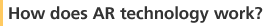 First of all, the object or scene and the information intended to accompany it are computerized. The computer performs a real-time analysis of the images filmed by a camera. It selects the information that needs to be added to the filmed image, and produces 3D digital images which are combined with the filmed material. The result is merged into a single image and displayed on the screen. The specificity of this technology is the real-time processing of the 2-D images of the camera to blend them with 3-D digital images.